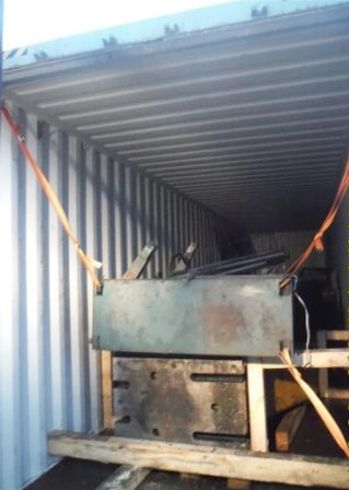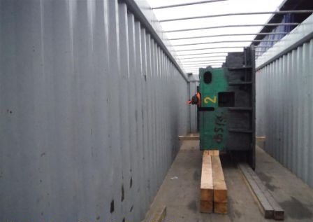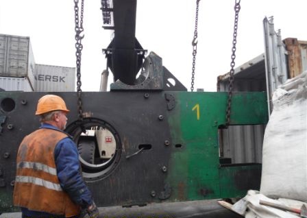 Пресс К04.019.840, усилием 1000 т. с. был отправлен автотранспортом из г. Кандалакша в порт Санкт-Петербург. На припортовом терминале пресс был затарен в два стандартных 40-ка футовых контейнера и один контейнер типа флэт-рэк.