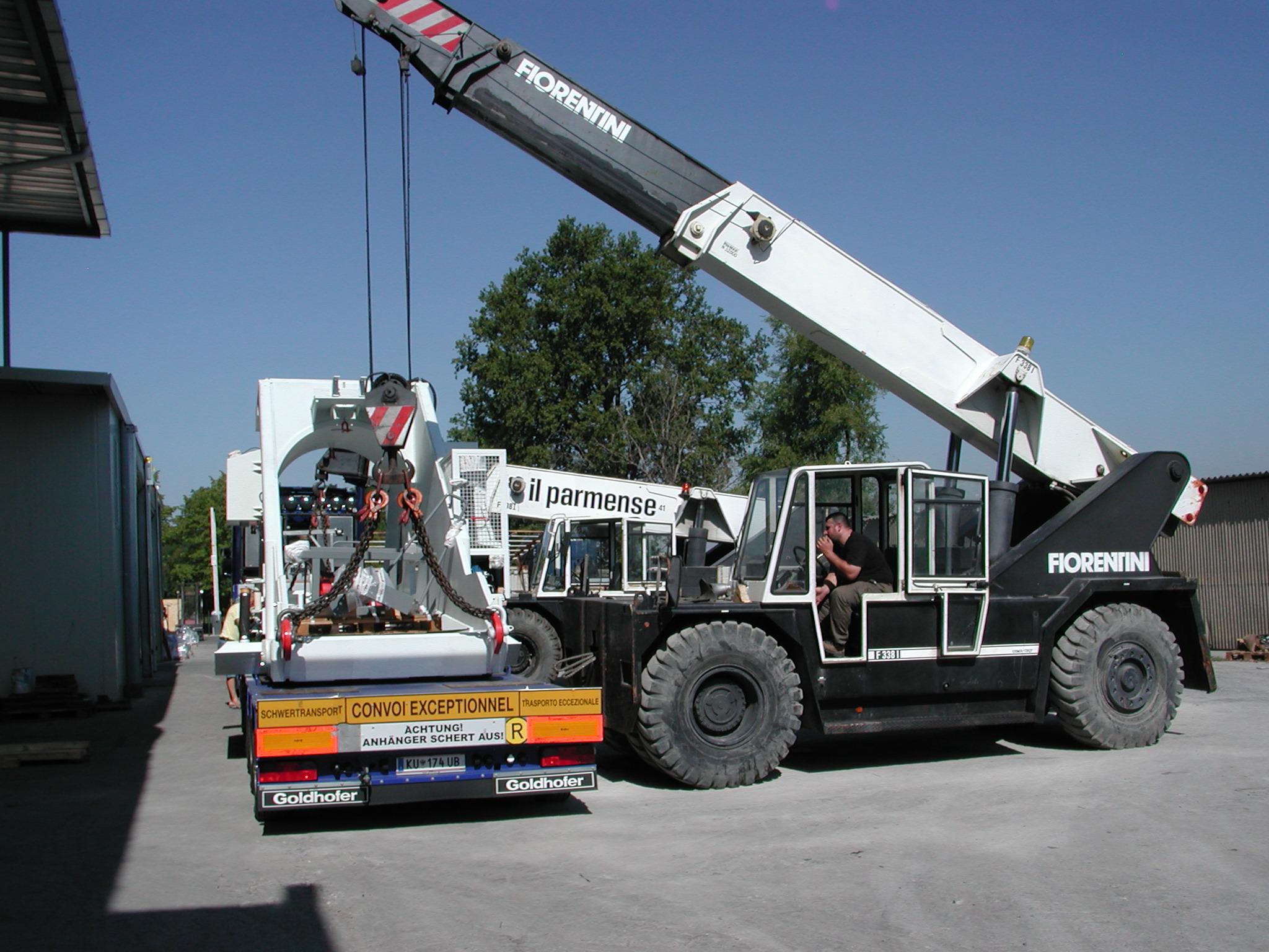 Габаритные размеры машины (Д х Ш х В): 10 м х 3,55 м х 3,35 м, вес 75 тонн. Отгрузка из г. Парма (Италия), на специализированный автомобильный транспорт для доставки до порта Киль (Германия). Затем перевалка на паром, линии DFDS и морская перевозка до порта СПб (Россия). Перевалка в порту СПб на специализированный автотранспорт и доставка получателю в г.Рославль, Смоленской обл.