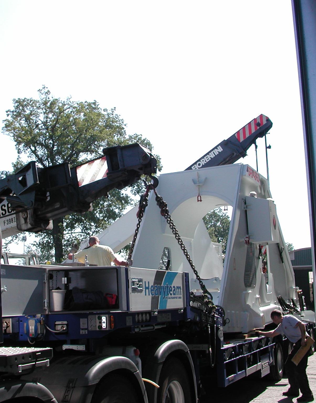 Перевозка разобранного пресса до порта Санкт-Петербург выполнялась автомобильным транспортом, в том числе тяжелых позиций - станина 100 тонн и стол 80 тонн на автомобильных модульных системах. В порту Санкт-Петербург груз был разделен на партии, где габаритные позиции были погружены в стандартные контейнеры, негабариты на ро-ро трейлеры. Несмотря на разделение партий груз был оформлен на таможне одной товарной позицией.