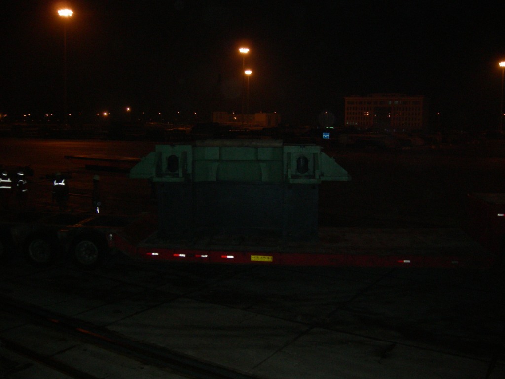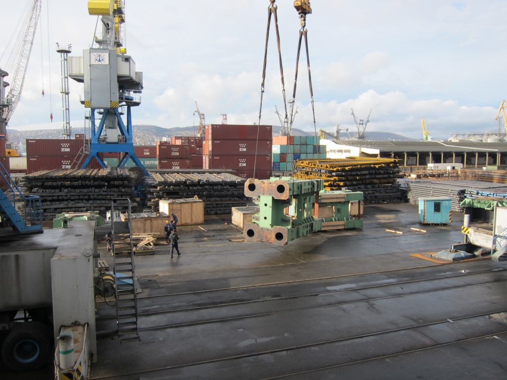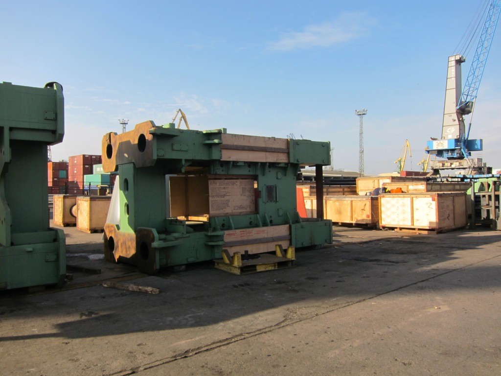 Перевозка разобранного пресса до порта Санкт-Петербург выполнялась автомобильным транспортом, в том числе тяжелых позиций - станина 100 тонн и стол 80 тонн на автомобильных модульных системах. В порту Санкт-Петербург груз был разделен на партии, где габаритные позиции были погружены в стандартные контейнеры, негабариты на ро-ро трейлеры. Несмотря на разделение партий груз был оформлен на таможне одной товарной позицией.