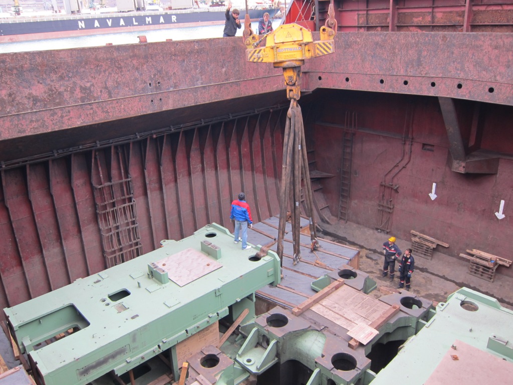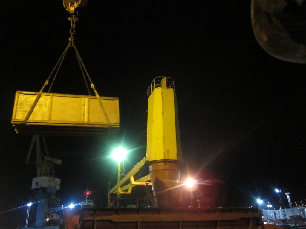 Общий вес машины в сборе – 107 тонн. С целью минимизации транспортных расходов машину разобрали на несколько частей. Отгрузка производилась из города Парма (Италия), автомобильным транспортом, далее перевалка в порту Киль (Германия) на паром, линии DFDS. По прибытию в порт СПб, после таможенной очистки, машину вывезли автотранспортом на ж/д ст. Ржевка (Октябрьской ж/д), и перегрузили на подвижной состав. Ж/д перевозка до ст.Дземги (Дальневосточной ж/д), затем перевалка на специализированный автомобильный транспорт и доставка до поселка Черный Мыс.