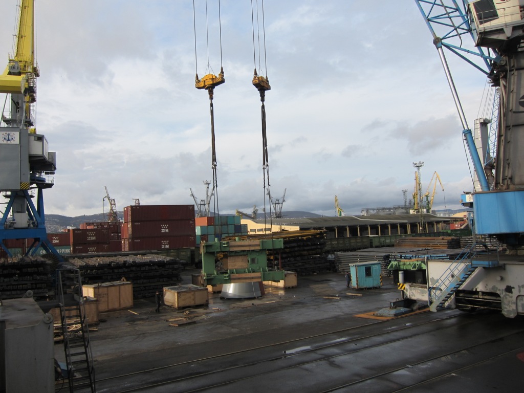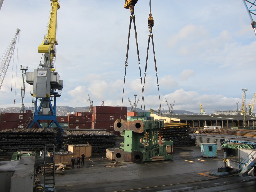 Доставка груза из Воронежа в порт Новороссийск выполнялась железнодорожным транспортом в несколько этапов. Габаритные позиции, упакованные в деревянные ящики отгружались в полувагонах и на платформах, а тяжеловесные негабаритные части пресса перевозились на специальных ж/д транспортерах. Накопление груза в порту заняло один месяц. Хранение груза и перевалка на судно производились непосредственно на терминале НМТП. Погрузка тяжеловесных позиций осуществлялась спаркой из двух 100-та тонных портовых кранов. Для морской перевозки было зафрахтовано два судна: для первой партии класса heavy-lift, для второй партии стандартное балкерное. По прибытию судов в порт Тяньзинь (Китай) была произведена выгрузка непосредственно на автомобильную технику грузополучателя, причем судно heavy-lift выгружалось собственными кранами, а выгрузка обыкновенного судна производилась при помощи плавучего крана.