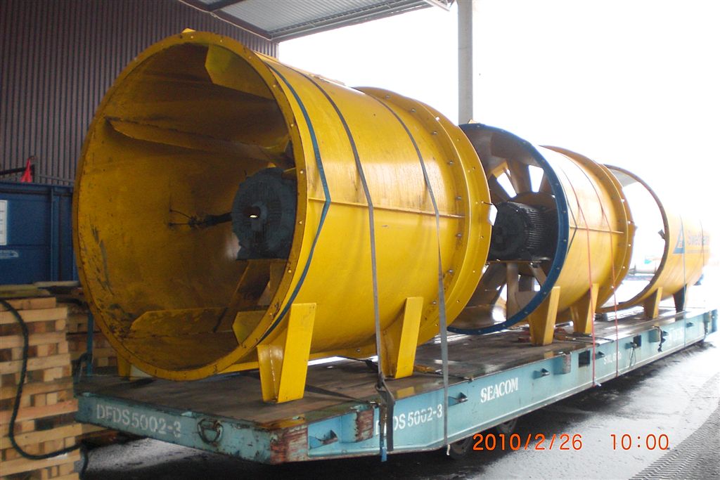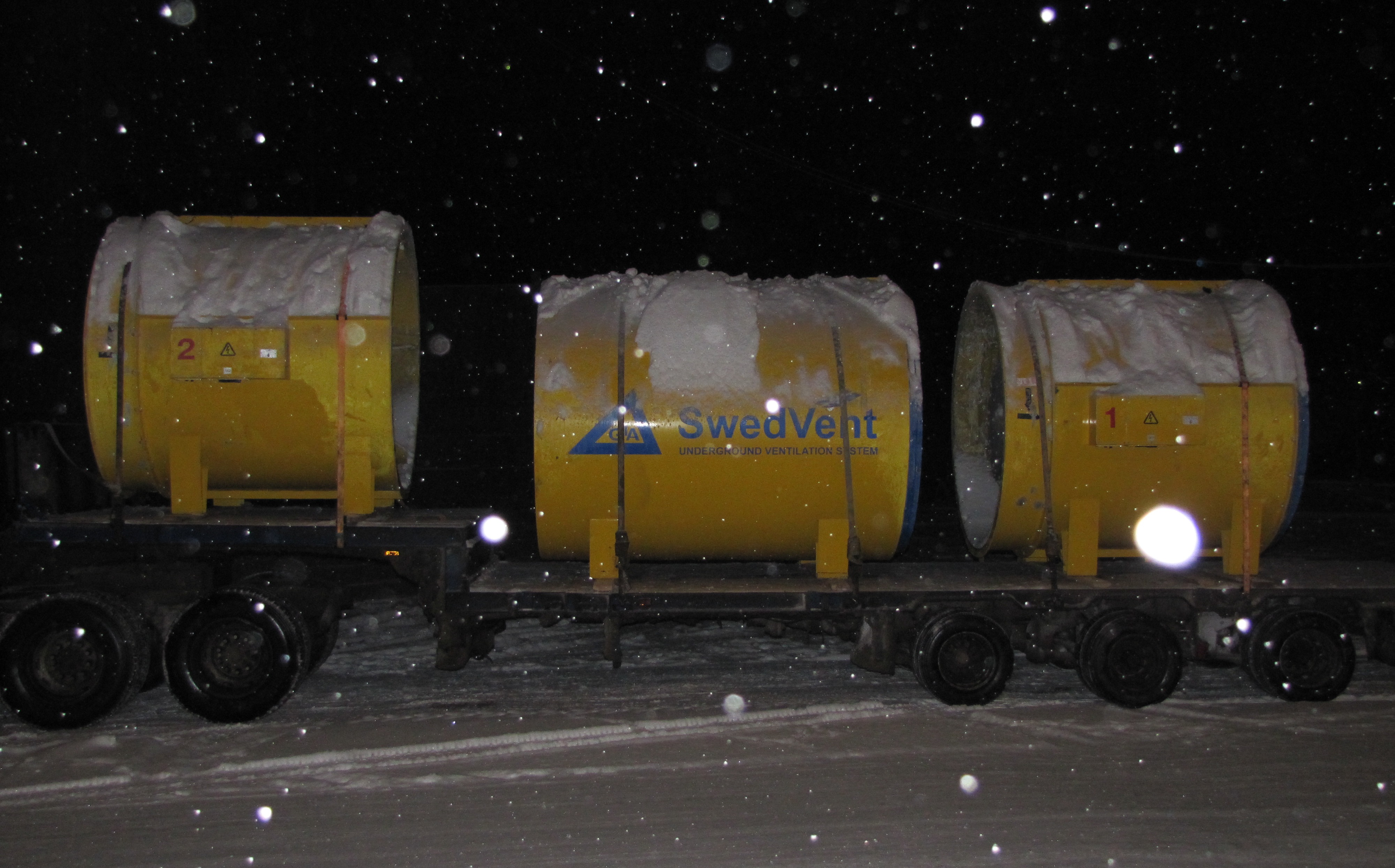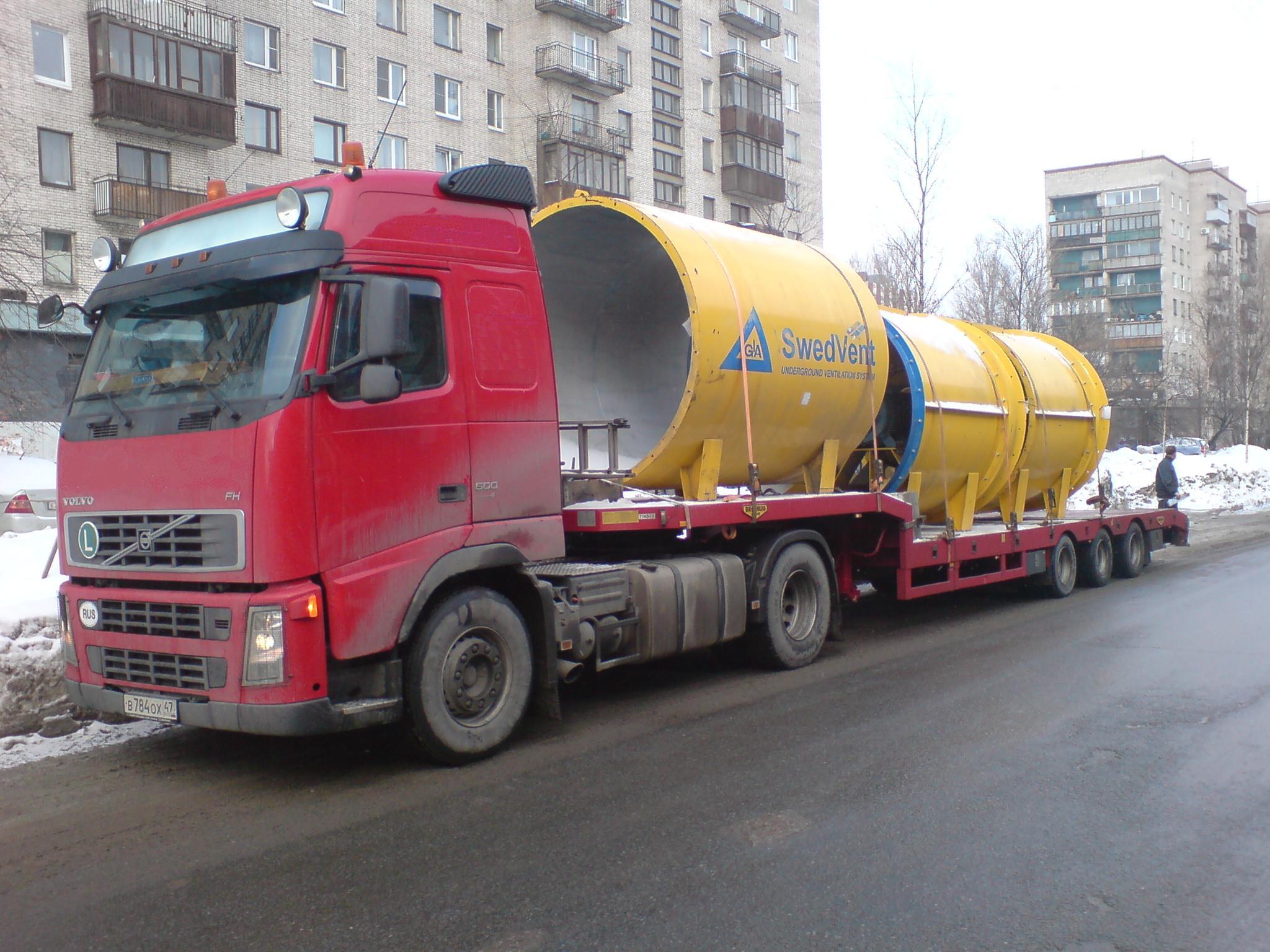 Перевозка вентиляторов и глушителя подземного рудника.